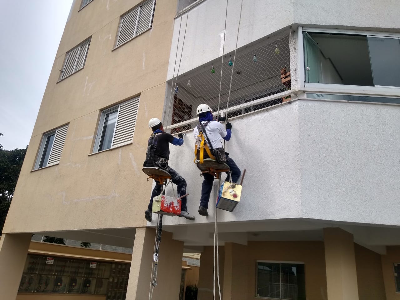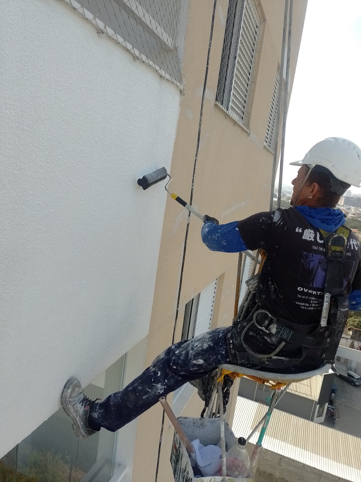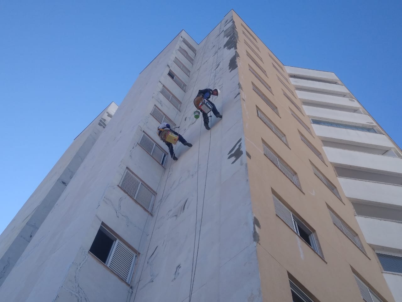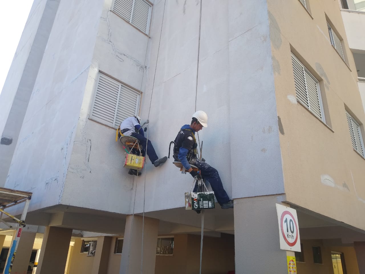 Profissionais Especializados em Pintura Predial e Industrial com Técnicas em Descida de Cordas e Serviços de Construção Civil atendendo requisitos essenciais para realização do trabalho - NR15 e NR 35.